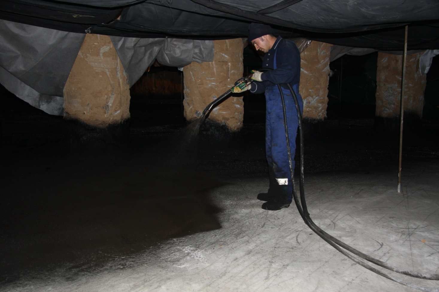 Подготовка поверхности: Поверхность очищается и подготавливается к нанесению гидроизоляционных материалов.