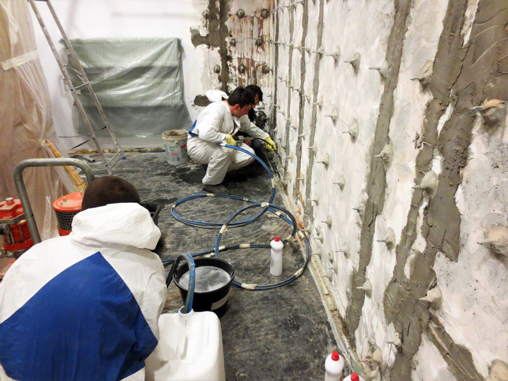 Инъекционная гидроизоляция включает введение специальных гидроизоляционных растворов в трещины и пустоты в структуре подвала. Это позволяет заполнить поры и предотвратить проникновение влаги.