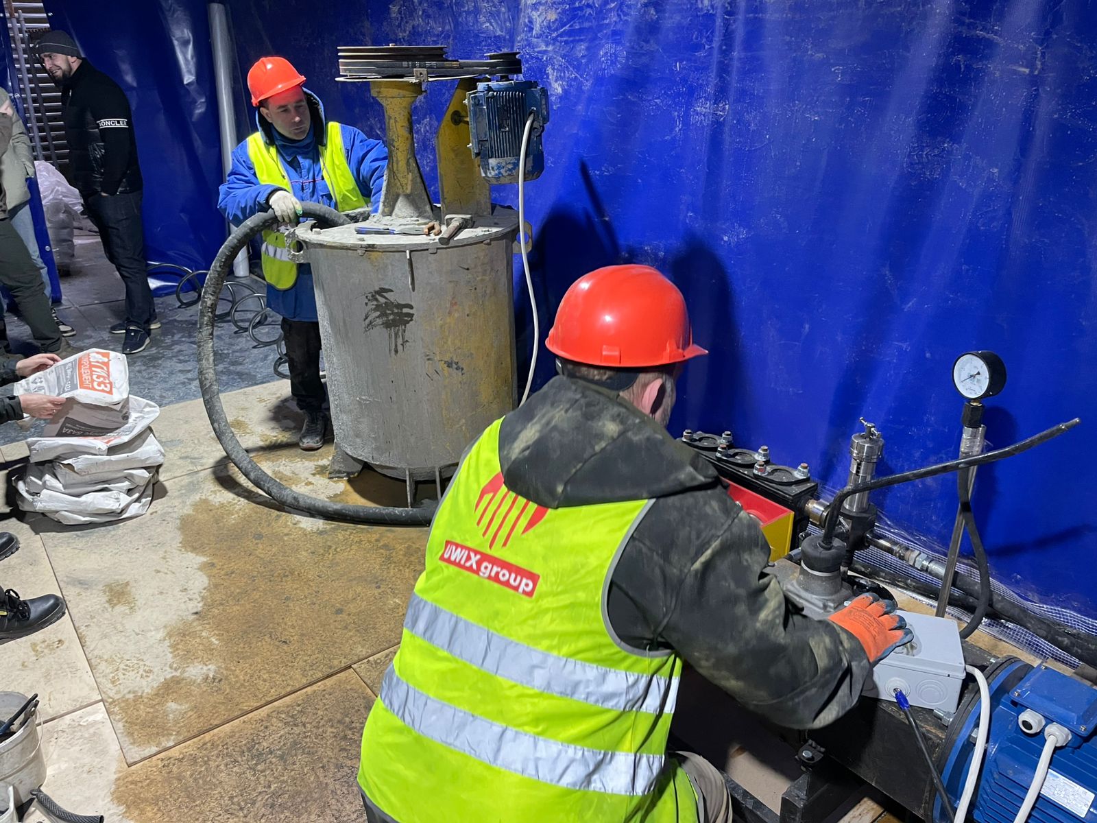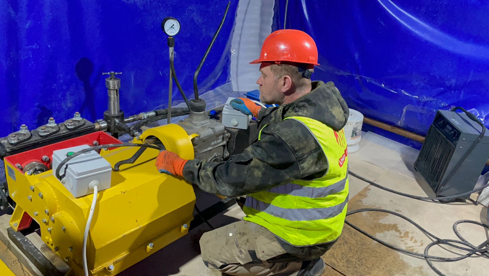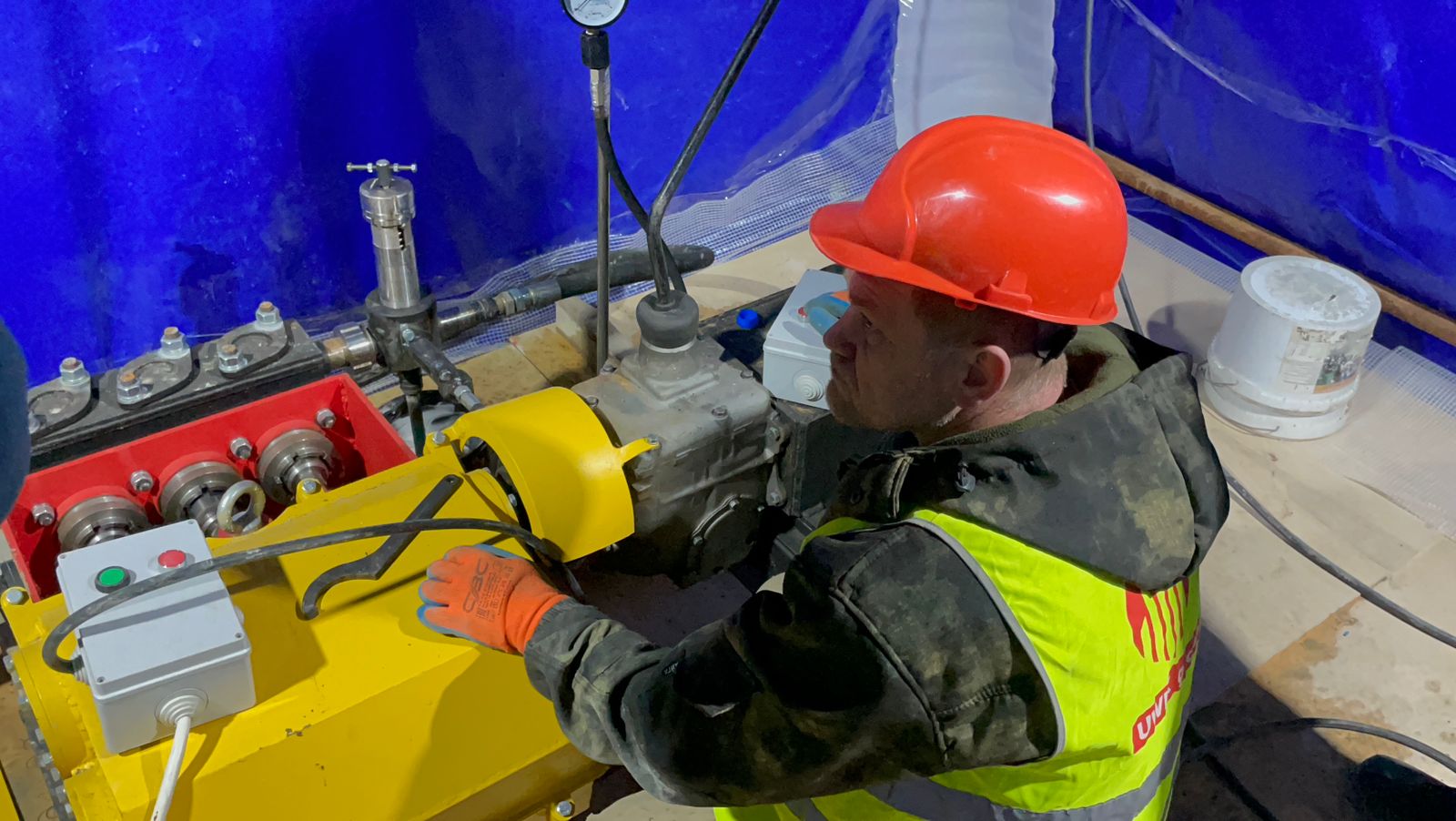 Работаем из подвала в стеснённых условиях на оборудовании разработанном и собранном на заказ для этого объекта.