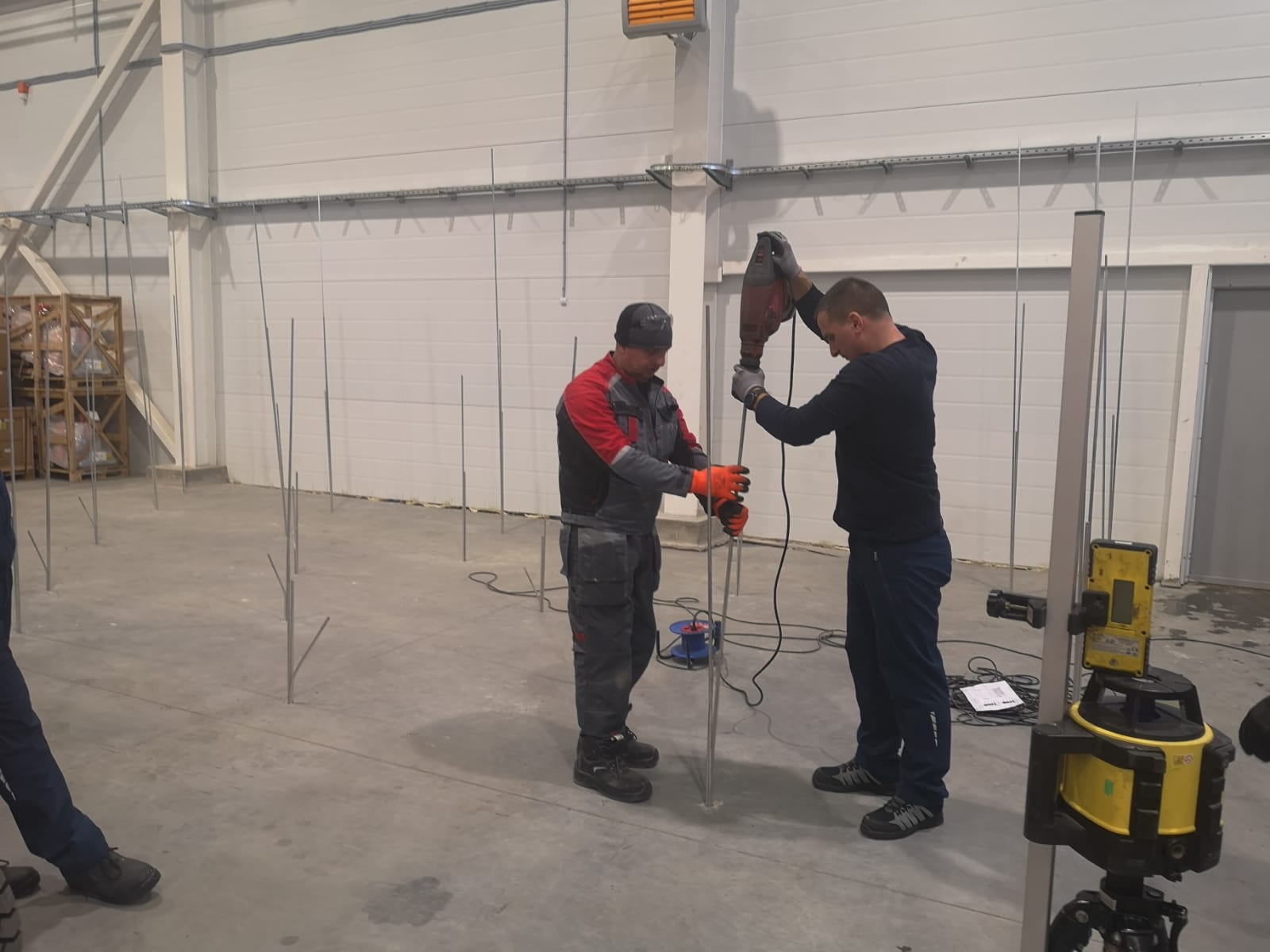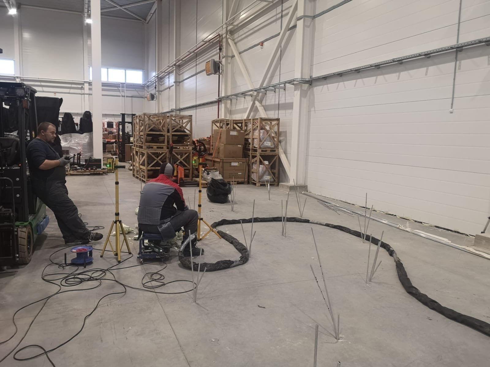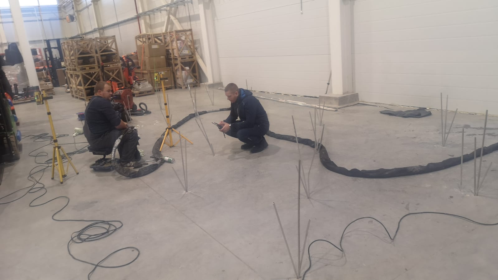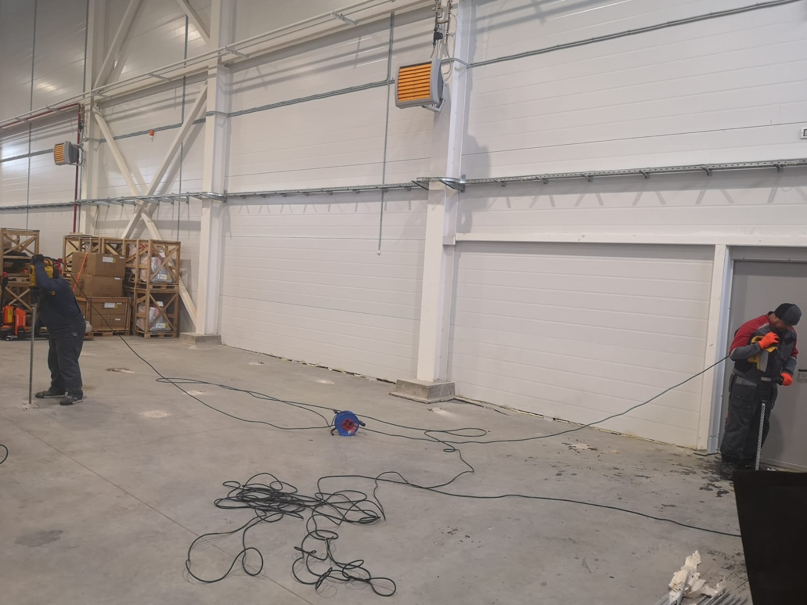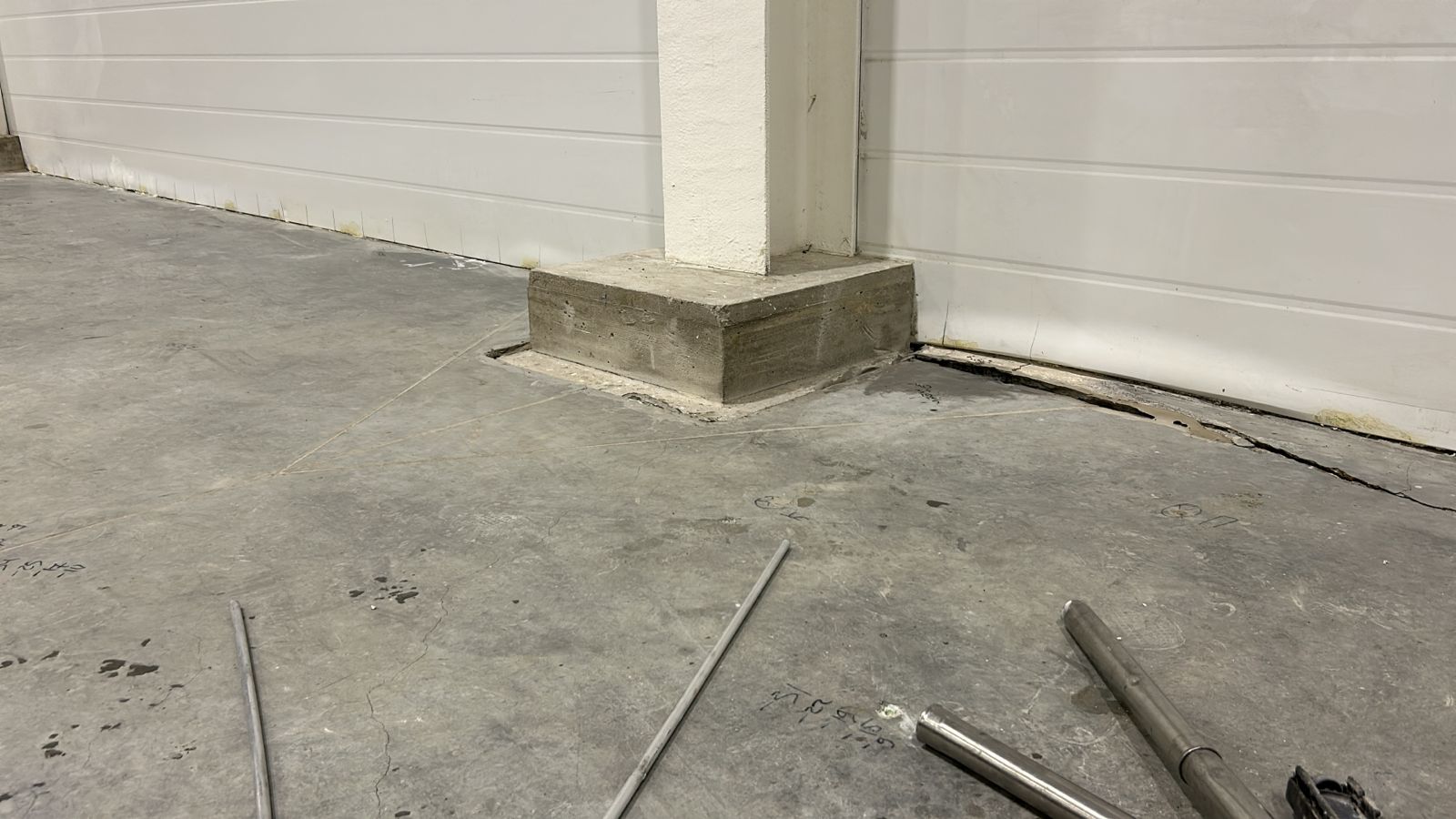 Выполненная работа: Стабилизация основания плиты пола склада, заполнение пустот в подплитном пространстве и подъем плиты пола склада до необходимых отметок.